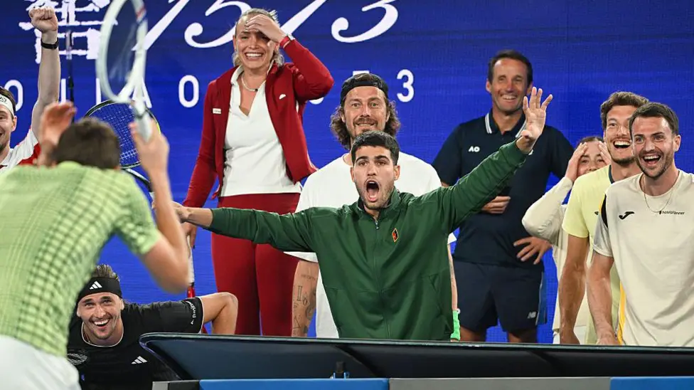 Many of the beaten players, including men’s number one Carlos Alcaraz, remained at Rod Laver Arena and gathered around televisions to watch the conclusion between the two unlikely finalists.